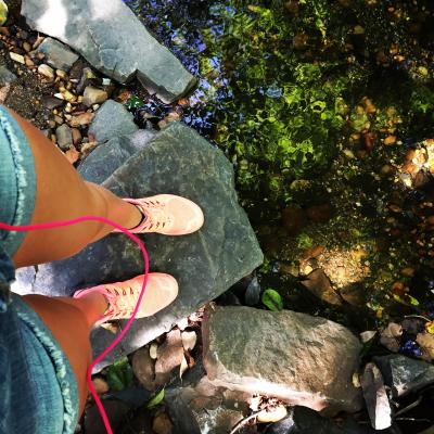 Am Sonntag habe ich dann einen zweiten Versuch gestartet. Es waren auch nur noch 27 Grad. Es gibt hier einen Rad-/ Joggingpfad, der sich durch ganz Vienna und Umgebung erstreckt, welchem ich erst einmal gefolgt bin. Nach ungefähr 2 Meilen, war mir das etwas zu eintönig, weshalb ich zurück in Richtung Heimat gegangen bin. Ganz in der Nähe unseres Hauses gibt es ein kleines Wäldchen, in dem ich einen wunderschönen Bach gefunden habe.