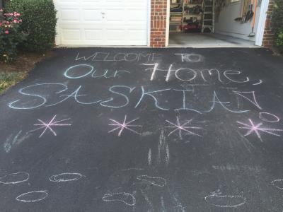 Gestern ging es also mit dem Bus 7 Stunden nach Vienna. Ich wurde von meiner Gastmutter und den beiden Jungs mit Blumen und herzlichen Umarmungen begrüßt. Mit dem Auto ging es dann 5 Minuten zum Haus in Dunn Loring, wo meine Hostkids mir mit Kreide ein "Welcome Home Saskia" in die Einfahrt gemalt hatten. Total süß!